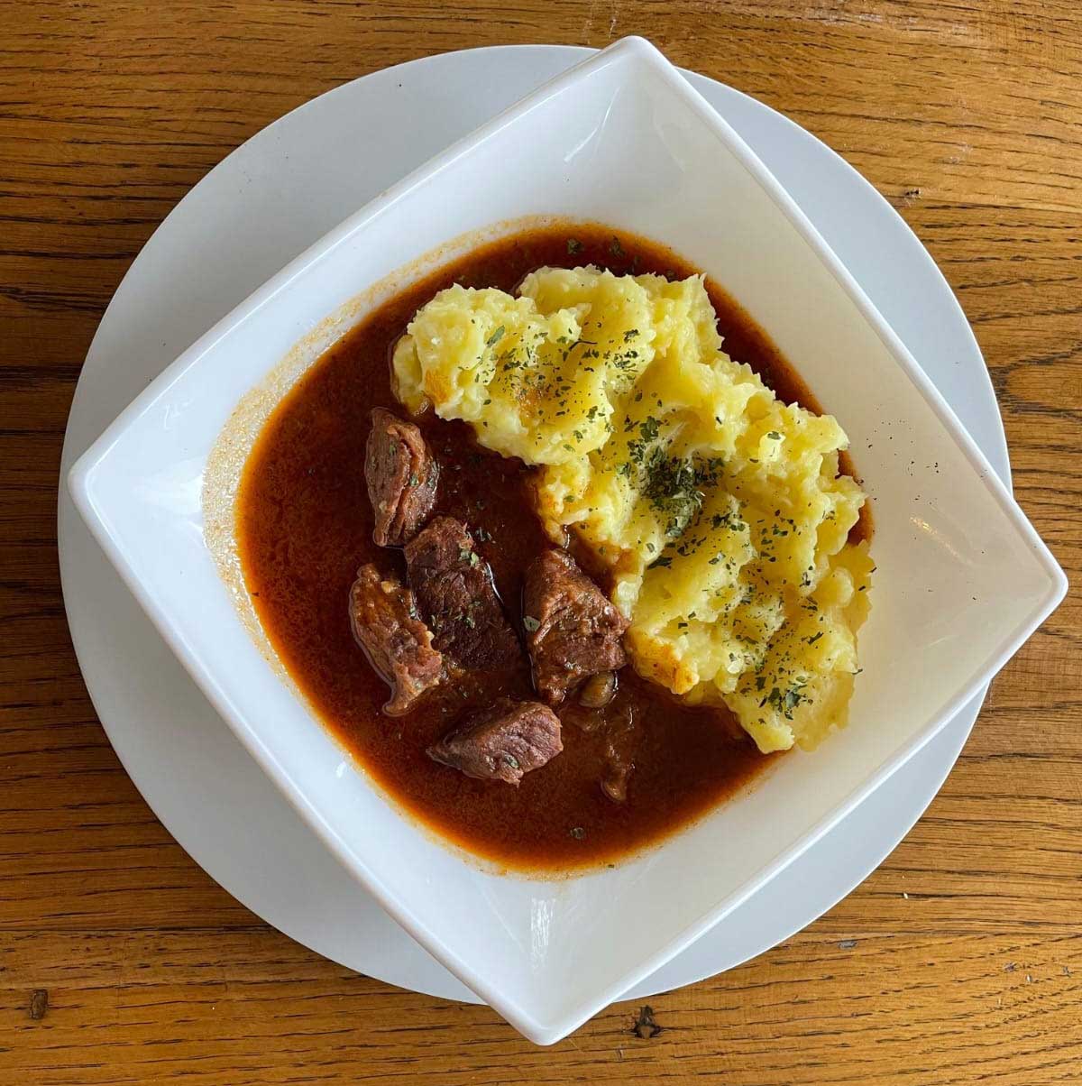 Sočno meso u bogatom, mirisnom umaku, posluženo uz kremasti pire krompir. Savršen spoj tradicije i domaćih okusa koji grije dušu.